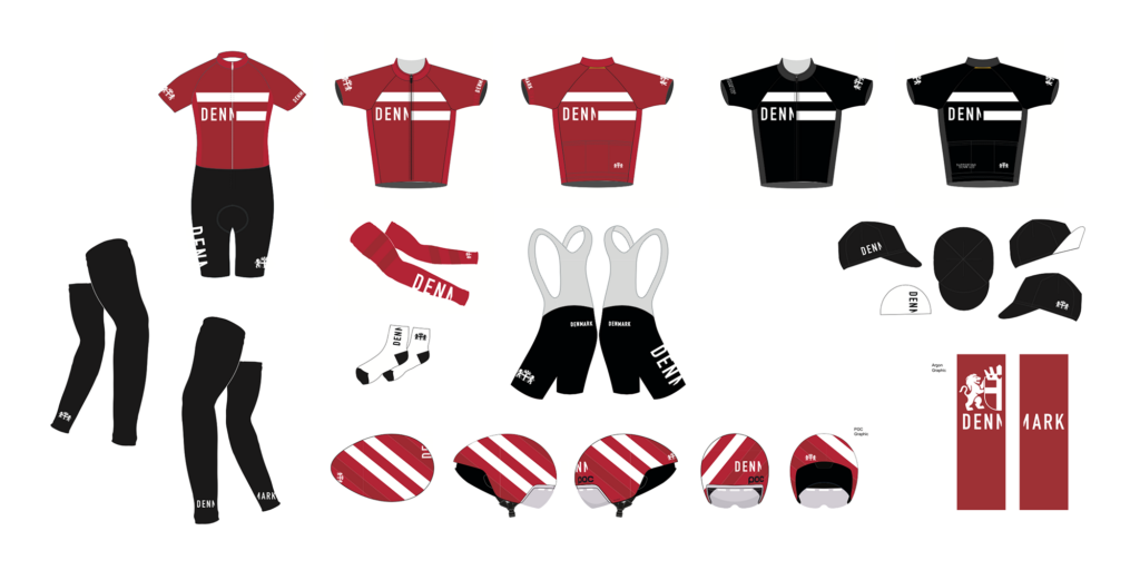 Vi tilbyder at give bud på en cykelversion af virksomhedens eksisterende identitet – fra logo og et par corporate farver i klassisk design til den avancerede løsning, hvor tøjet skal stå særligt frem. Det er OL tøjet RIO 2016 til det danske landshold et fint eksempel på.